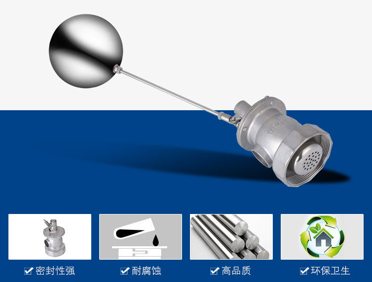 當(dāng)水塔內(nèi)水面下降時(shí),浮球下落,利用水管內(nèi)水的壓力,將閥體里的密封硅膠柱塞打開,閥體開啟供水,當(dāng)水塔水位上升時(shí),浮球上浮,連桿帶動(dòng)柱塞,硅膠體密封進(jìn)水孔,閥體停止供水.