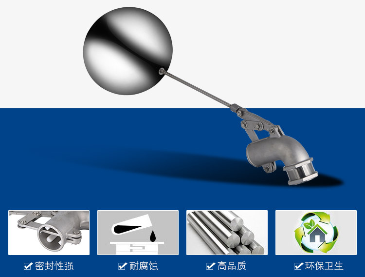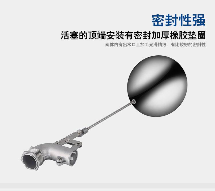 當(dāng)水塔內(nèi)水面下降時(shí),浮球下落,利用水管內(nèi)水的壓力,將閥體里的密封硅膠柱塞打開(kāi),閥體開(kāi)啟供水,當(dāng)水塔水位上升時(shí),浮球上浮,連桿帶動(dòng)柱塞,硅膠體密封進(jìn)水孔,閥體停止供水.