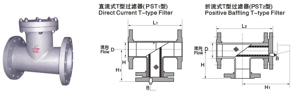 直流式T型管道過濾器結(jié)構(gòu)圖紙: